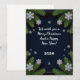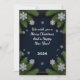 Elegant ram för högtiden med gröna tallgrenar och glittrande silver snöflingor mot en mörk bakgrund, perfekt för festliga gratulationskort eller glada säsongsbetonade mönster.