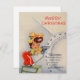 Vintage julkort med tjej som jobbar hårt på julafton.