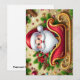 En glad representation av jultomten i ett rött släde omgivet av juldekorationer inklusive kotte och ornament. Perfekt för julrelaterade designidéer och julsammankomster.