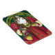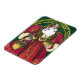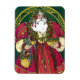 Vintageillustration i victoriansk stil Glad jul-semestern glada jultomten design med gamla Sankt Nikolaus iklädd en elegant, fin röd kappa med järnekronblad och bär runt halsen. Tomten håller en leksakskrigare ridande på en häst i ena handen med en korg med godsaker och en skål i den andra. En dekorativ grön och röd kant. God jul och trevlig jul!