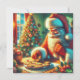 Personlig julkort. En söt akvarellstil ai-konst som visar en gammaldags retro-jultomte som äter chokladfläskakor på julafton med vintage-vibbar.