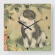 Julig klassisk jul, söt valp under julgranen fyrkantig klocka