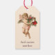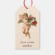 Julig klassisk, viktoriansk ängel med blomsterkran presentetikett