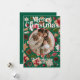 Detta festliga julkort ger magin från semestern till liv. Dekorerad med vackert inslagna presenter, färska tallgrenar, kottar, pepparkakor och sockerkakor som frammanar minnen av glada jultiditioner. Detta kort fångar essensen av mysiga sammankomster, genomtänkta presenter och tidlös glädje under säsongen. Gör det till ditt eget genom att redigera texten och byta bild.