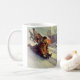 Juligt jul, pappa och dotter åker släde kaffemugg