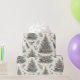 Livfullt inpackningspapper med charmiga illustrationer av julgranar, stjärnor och grönska, perfekt för att ge en festlig touch till högtidspresenter och firanden.