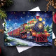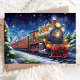 Fira magin med den här livfulla julkortet som visar ett festligt jultåg dekorerat med färgglada ljus och dekorationer. Perfekt för tågfantaster eller någon som älskar en touch av julnostalgi, det här kortet ger värme och glädje till säsongen.