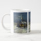 Juligt vinterkyrka i snö med måne jumbo mugg