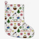 Julens färgstarka yta mönster-design med illustrationer av en julpudding, stjärna, bubblor, snöflingor, snögubbe, candy cane, Julgran, julklappar och lager.