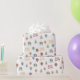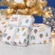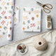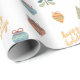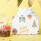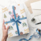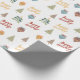 En chic och en modern julomslutning papper med illustrationer av julensembler och ett brev av "glad helg".