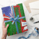 Den här bilden är en uppsättning isskridskor i julens färg av rött, grönt och vitt. En blå och vit bakgrund med glitter lades till i den här utformningen. Den här presentfigursättningen är tillgänglig i olika stilar och storlekar.