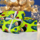 Färgfull, vit och rolig vintage med Julafton-strumpa med röd poinsettiasblomma och 3D röd ruby,teal blue sapphire gem-stenar.