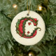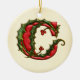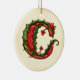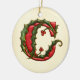 Härliga monogrammed julprydnadar, som har ett rött brev C som smyckas med järnek mot en solbränd antikvitet, tittar bakgrund. Anpassadebakgrunden avbildar kan tas bort, om du föredrar en vitbakgrund, eller du kan ändra den till färgen till ditt primat med skräddarsy knäppas. Anpassadetext på baken för meddelande av ditt primat.