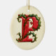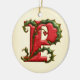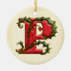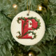 Härliga monogrammed julprydnadar, som har ett rött brev P som smyckas med järnek mot en solbränd antikvitet, tittar bakgrund. Anpassadebakgrunden avbildar kan tas bort, om du föredrar en vitbakgrund, eller du kan ändra den till färgen till ditt primat med skräddarsy knäppas. Anpassadetext på baken för meddelande av ditt primat.