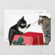 Katter som slåss om en julklapp, som är mycket stygga och inte det minsta fina fotopulkortet. MYbox!