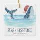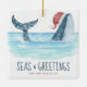 Kustens prydnadsföremål vid kusten har en vattenfärgsval med en julhatt som simmar i havet med ljus som dekorerar svan och en "Seas & Hälsning"-rubrik (båda linjerna kan vara personlig). Besök min "Whale Santa Seas & Hälsning"-samling för att samordna julkort, julfestinbjudningar, klistermärken, märkre för gåvor, dekor och party. Art av KL Lagrar