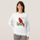 Juljulhelgkvinna skjorta för långärmad som presenterar en röd huvudsaklig vildfågelsitta på en gren av järnekbär och löv. Textord som läs "härlig säsong".