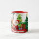 Jultomten, Cute Elf och Reindeer och Julgran Bakgrundskaffe Mugg