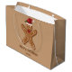 Desteis festliga illustration av en brun kaka av färg med en julhatt och en röd båge. Bakgrunden färg är ljusbrun. Det finns också två anpassningsbara textområden.