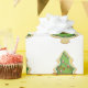 Ljust utskrivavet slå in papper som firar säsongen! Julgrankakamönster med "det god jul" meddelandet som överdrar designen.