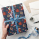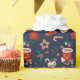 Gå i helgdag med roligten mönster av polkagrisar, kakor, lager, tekannor och ett mugg av hett kakao! En levande färg av röd, grönt, brun och vit på en vacker, kontrasterande blå bakgrund.