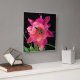 Ett enormt rött, purpurfärgat, kanske rosor även? blomman brister från en normalt ointressant grön kaktusväxt. Fotograferat i makro mot en svart bakgrund, med ta tid på teckning som tillfogas i rosor.