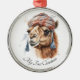 Vattenfärgning av kamel med vinterhatt av rosa woolen sticka i jul stil