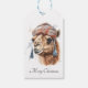 Vattenfärgning av kamel med vinterhatt av rosa woolen sticka i jul stil
