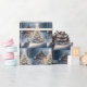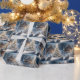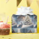 En snöscen har en quaint wooden-lada som lagts till med helgdag och ett belyst Julgran ligger nära med en kanin i förgrunden