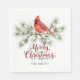 Lägg till en festlig beröring till bord med den här eleganten julnapkin med en ljusröd kardinal som genomsyras på snövö gräs grenar. Perfekt för julmiddagar, firande och julfester på vintern.