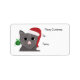 En söt grått kattunge i en tomtehatt med en grönt dekoration på ett öra accentuerar denna söta juldesign.