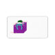 En söt julkatt i blått med en tomhatt. Han hänger ut ur en lila box med rosett band...