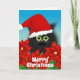 Julkatt i Santa Hat Amid Poinsettia Helgkort