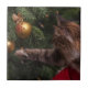 Utformningen innehåller ett foto av en katt som når en dekoration på Julgran.