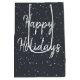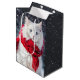 Julvit katt med röd vinterscarf i snöflingor och Glad helg. Text kan ändras.
