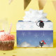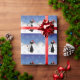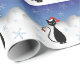 Gullig gothstilkatt i en röd julsanta hatt och en julbauble på avsluta av dess svan med snöflingor.