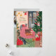 Kute retro-julillustration med katter runt Julgran, tittar presenter, och lägg på en stol med New York-staden genom fönstret med snö. Originalteckningar av Caroline Bonne Müller