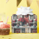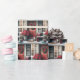 En festlig röd dörr läggs med en andedräkt och flankeras av vibrerande poinsettias som hälsar gäster med en "God jul"-dörrmatta och tabby katt som husdjur