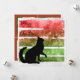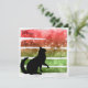 Julkatten, röda och gröna glittrande band på platt julkort - En svart julkatt tittar på en fin stor rosett. Fem färgband finns bakom katten med små glittrande prickar som framhäver julens magi. Bakom allt detta finns ytterligare ett glittrande lager i ljust grått och vitt. Baksidan av det platta kortet har utrymme för att placera fyra av dina egna foton. Om du bestämmer dig för att inte använda foton kan du ta bort all text och det kommer fortfarande att finnas en glittrande bakgrund. God Jul från Kristin och Steve på KNS Christmas.
