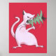 Den fina julen poster med ett superskoj digitalt illustration av en ond vit tjock katt som äter Julgran på pulserande röd bakgrund. Du vet vad som händer på jul varje år. Katt kärlek för att förstöra helgdag dekoration.