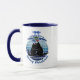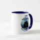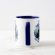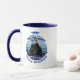 Jul Katt Muggar, Meowy Jul Kute-gryning, mugg-design med klassiskt blått och vitt utseende.