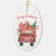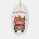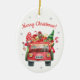 Julkeramiska prydnadsföremål med röd bil julgransprydnad keramik