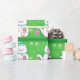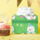 Vintagen illustrerar julens helgdag med en söt vit katt som bär en julhatt och blå klocka. Detta förtjusande kattdjur i håriget håller ett Julklapp och har ett hårt hjärta hängande från sitt svan. Startar gnistra på gröntens bakgrund.