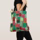 Julklapp med rosett band och skyggar i skuggor av grönt, rött och vitt på ljust grönt bakgrund.