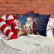 Den här söta blå dekorativ kudde-kudden har jultomten som levererar gåvor. Mamma och Pappa kommer att kärlek denna magiska scen och julomsmeddelande från barnen. Om du vill ändra bild och text klickar du på personlighetsknappen. Den här designen innehåller A.I.