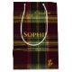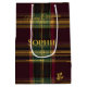 Denna personliga julklappspåse har ett rikt burgunderrött tartan-rutat mönster med klassiska gröna och gyllene accenter inspirerade av traditionell julstil. Textområdena är helt redigerbara, så att du kan anpassa den med valfritt namn eller festligt meddelande. Perfekt för tidlös julpresent, familjefirande och eleganta vinterfiranden.