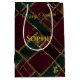 Denna personliga julklappspåse har ett sofistikerat geometriskt mönster i djupa röda och gröna nyanser med elegant guldlinjedetaljering. De redigerbara namnområdena låter dig anpassa den med valfritt festligt meddelande. Perfekt för lyxiga julklappar, exklusiva högtidspartyn och stilfulla säsongsfiranden där presentationen verkligen sticker ut.