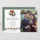 Bröllopsinbjudan med foto och elegant typografi. Designen har gyllene bröllopsklockor med en röd slinga och en julibrand med röda bär. Perfekt för en högtidlig förlovningsannons eller ett vinterbröllop. För koordinerade inbjudningar, brevpapper och evenemangdekor, vänligen bläddra i min Holly Bells Bröllopssamling eller skicka ett meddelande till mig för att lägga till eventuella ytterligare föremål du behöver.