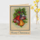 Det här julkortet har mycket ljusa och färgglada julklockor med järnek och bär. En strödd snö gör detta till ett festligt julkort.
