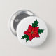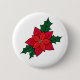 En knappnål med en röd orange jultomte med mörk grönt löv och en svart kontur